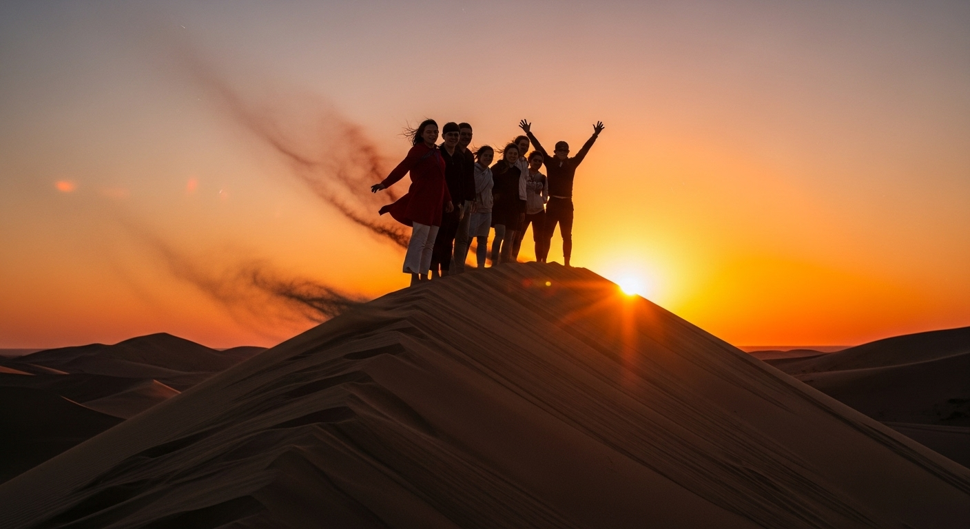 Пешая прогулка к вершине бархана, демонстрация акустического феномена, свободное время для фотосессий